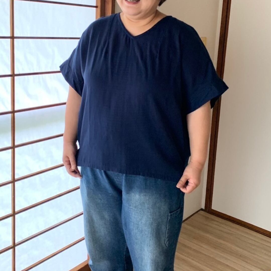 ワンサイズでSサイズの方からLLサイズ(3L)の方まで、自然なシルエットで着れるデザイン