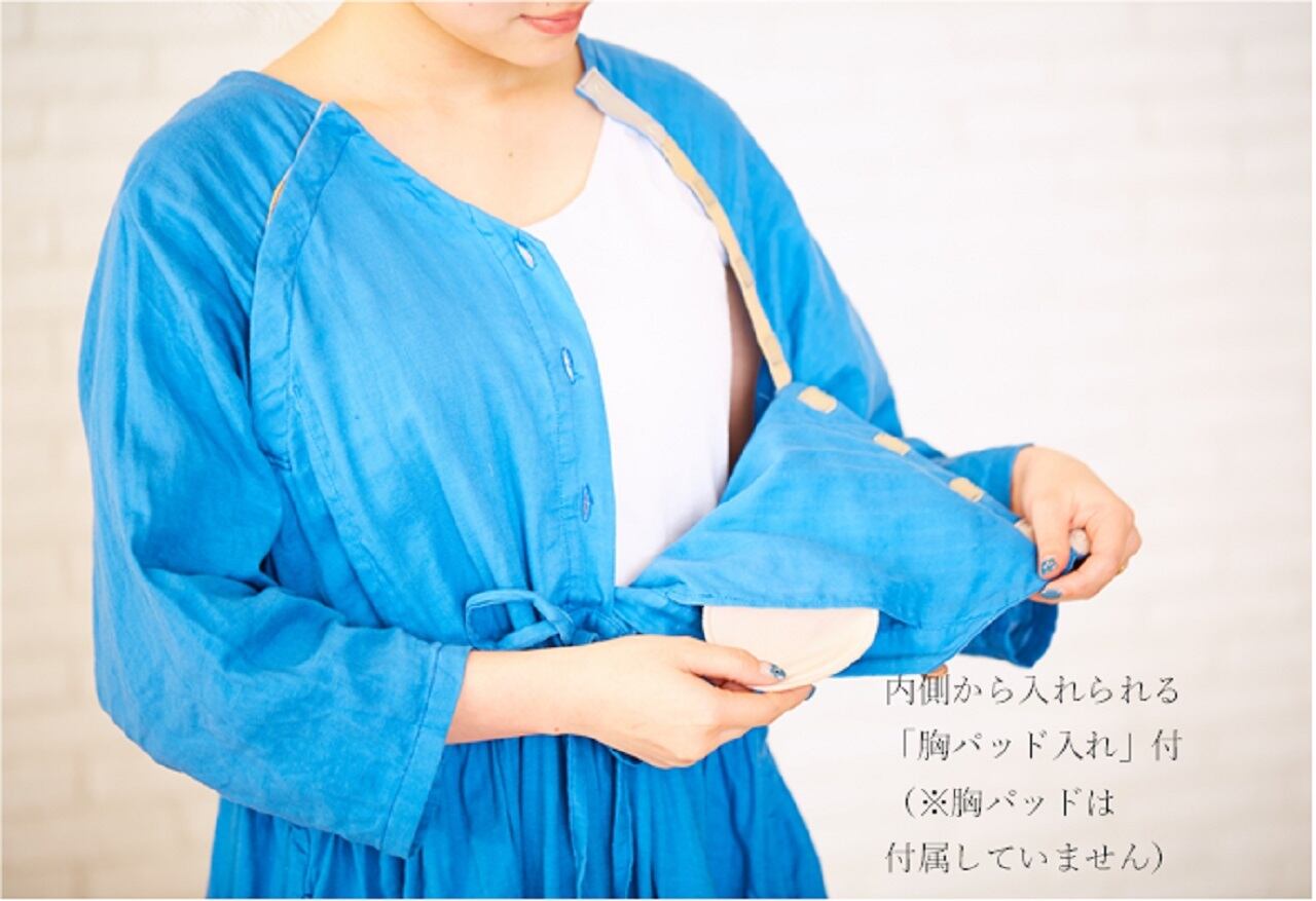 「肩から脇にかけて片方の胸のみを楽に開閉できる」kokomyuオリジナルデザインで、女性の羞恥心を少しでも和らげます。